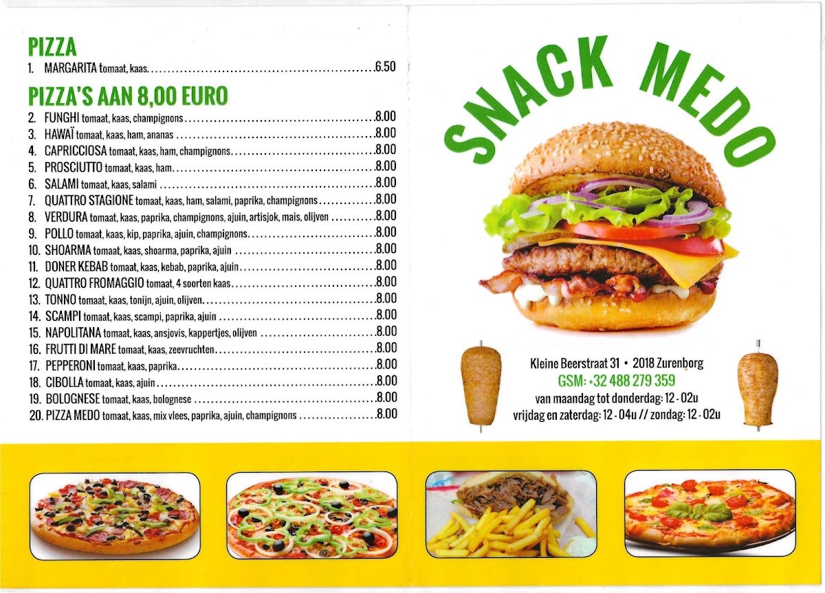 Snack Medo, located at Kleine Beer Straat 31, 2018 Antwerpen, Belgium, offers a delightful and diverse menu that is sure to satisfy a variety of tastes. The standout dishes include the Kapsalon, Drum Kip, and Hamburger, each bringing its own unique flavor to the table.